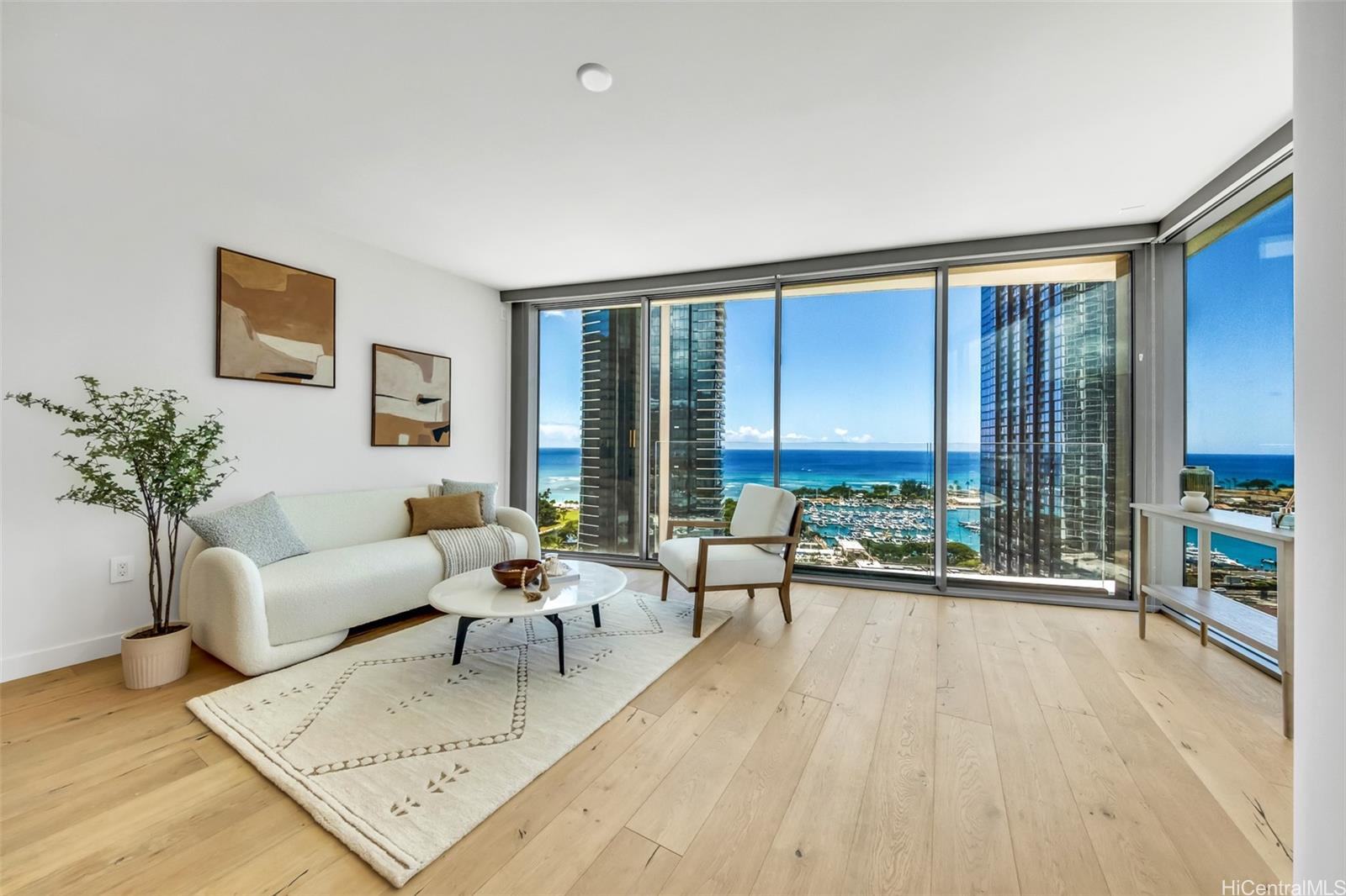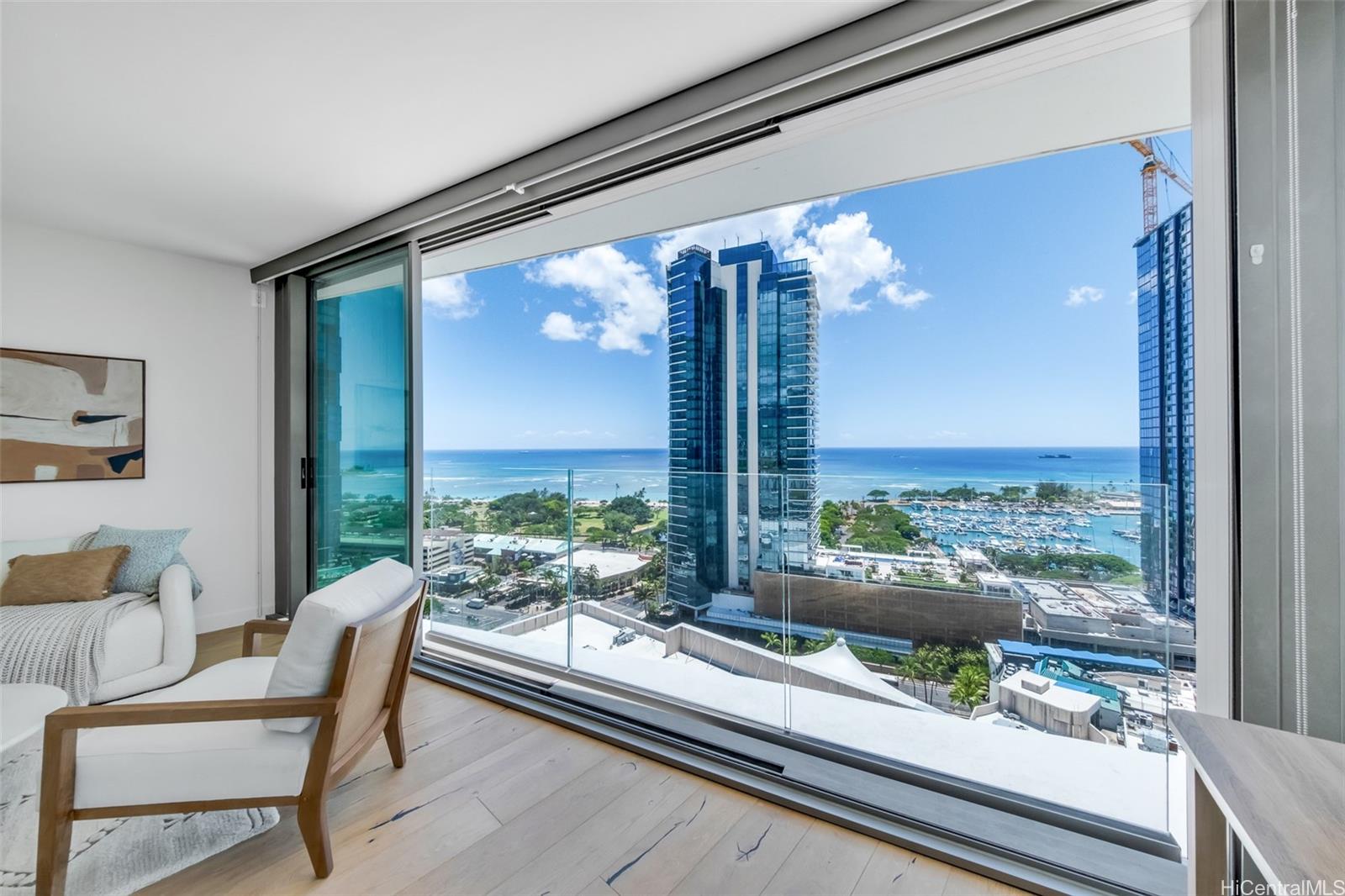 | eGo offers exceptional amenities for those who want to live the ultimate modern Hawaiian lifestyle with an unprecedented level of amenities and is conveniently connected to HawaiiGs flagship Whole Foods Market. Residents experience the best of urban living in the heart of Ward Village in the most sought-after Kakaako neighborhood, restaurants and theater are steps away. This premium 01 unit on 19th floor features 1327 square footage size three bedrooms and three bathrooms including two primary bedroom suites with walk-in closets and deep soaking tubs. 19 floor level offers the best viewpoints of Pacific Ocean, Ala Moana Park and Kewalo Basin harbor architecturally. It is thoughtfully designed with meticulous attention to detail, floor-to-ceiling windows provide ample light and create a feeling of openness, top quality European fixtures and fittings provide a stunning aesthetic statement and practicality and convenience. A 56 sq ft storage is included. | What will it cost to Buy?