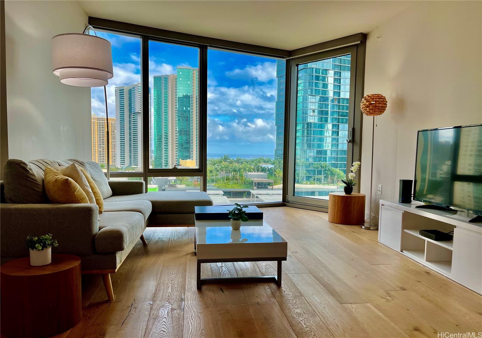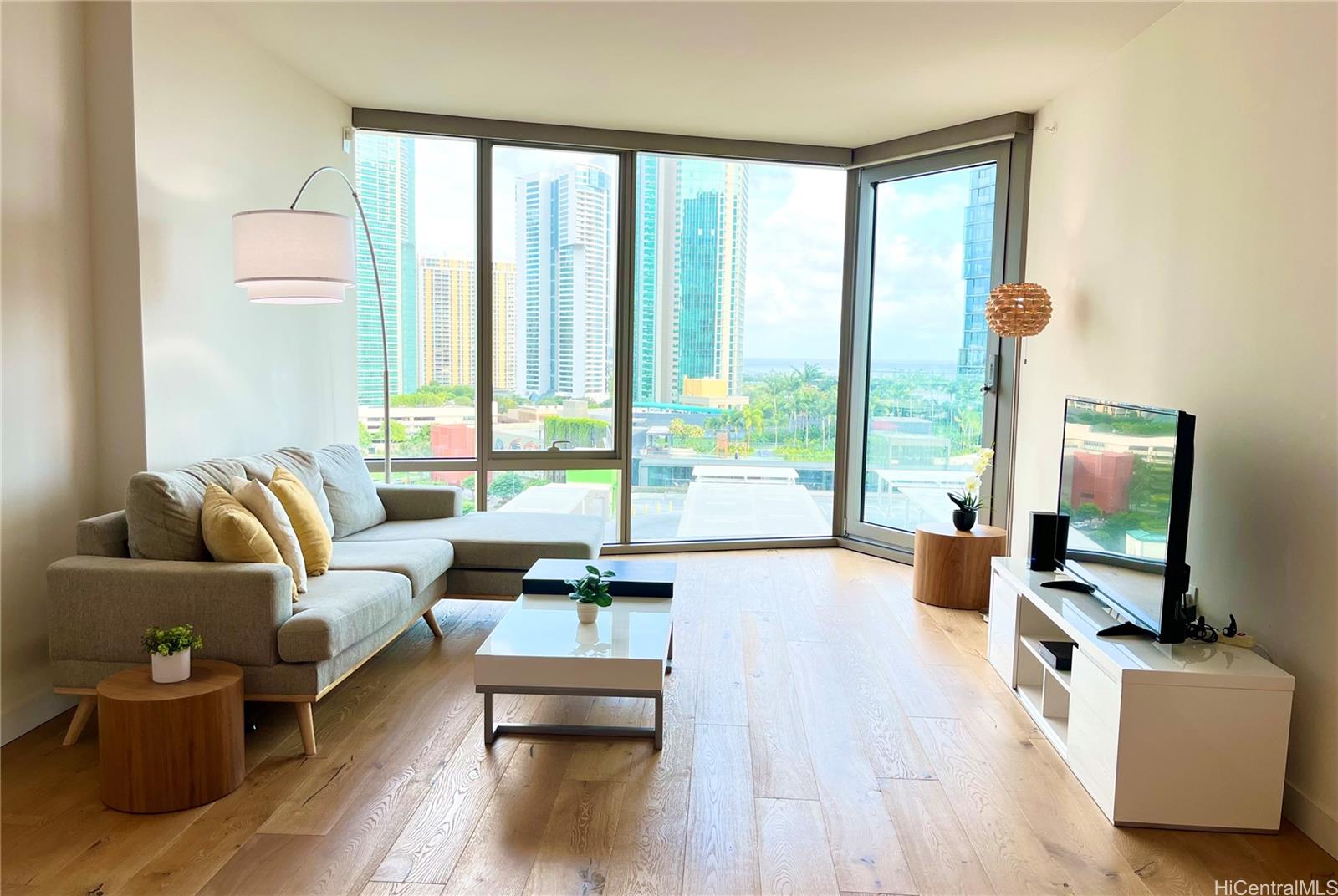 | his 08 floor plan is the only one bedroom floor plan in the highly desired Diamond Head side with beautiful ocean and city views. It comes with premium Bosch stainless steel appliances, countertops, hardwood floors, double sinks in the bathroom, and built-in drawers in the large walk-in closet. Floor to ceiling glass windows with motorized blinds. Parking is conveniently located on level 2 and a STORAGE UNIT (SM-42) is included. This home features resort-like amenities such as a concierge, rooftop terrace, lap pool, fitness center, theater, childrenGs play area, guest suites, outdoor barbecue, dining cabanas and dog-run area. Ae'o is featuring the best of urban lifestyle in the heart of Kakaako with direct access to Whole Foods Market. Centrally located and close to theaters, dining, and world-class shopping at Ala Moana Shopping Center. Must see! | What will it cost to Buy?