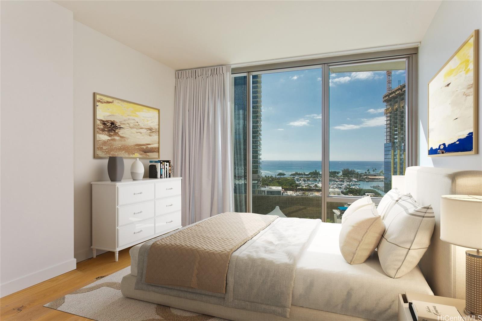 | elcome to the Ae'o that located in Kaka'ako at the Ward Village community. Neighborhood provides unique local retailers, world class retail and restaurants, movie theaters, Whole Foods, and so much more. The unit is facing the incredible ocean and sunset view. Highly desirable corner unit with spacious 3 bedrooms 3 bathrooms includes a primary suites and junior suites both come with a double vanity bathroom and walk in closets. Contemporary kitchen design with luxury Bosch appliances. Unit comes with original developer upgrade includes hardwood flooring throughout the home. two Toto Nearest Toilet, and electric power outlet in each parking stalls. Ae'o also has a wide selection of resort-like amenities such as BBQ cabanas, movie theater, Sky Terrace on the roof top, indoor and outdoor fitness, recreation room, large lap pool and family pool, kids playground, and lots more. $41.00 Other fees monthly is for Internet and cable. | What will it cost to Buy?
