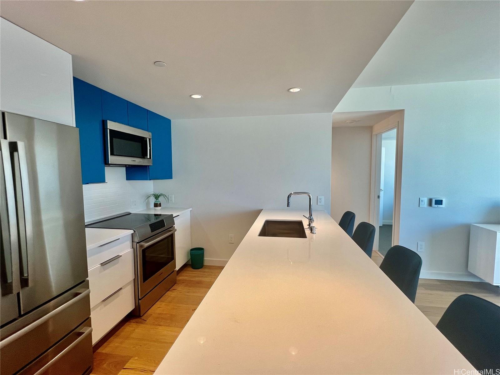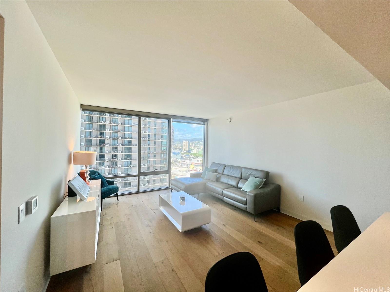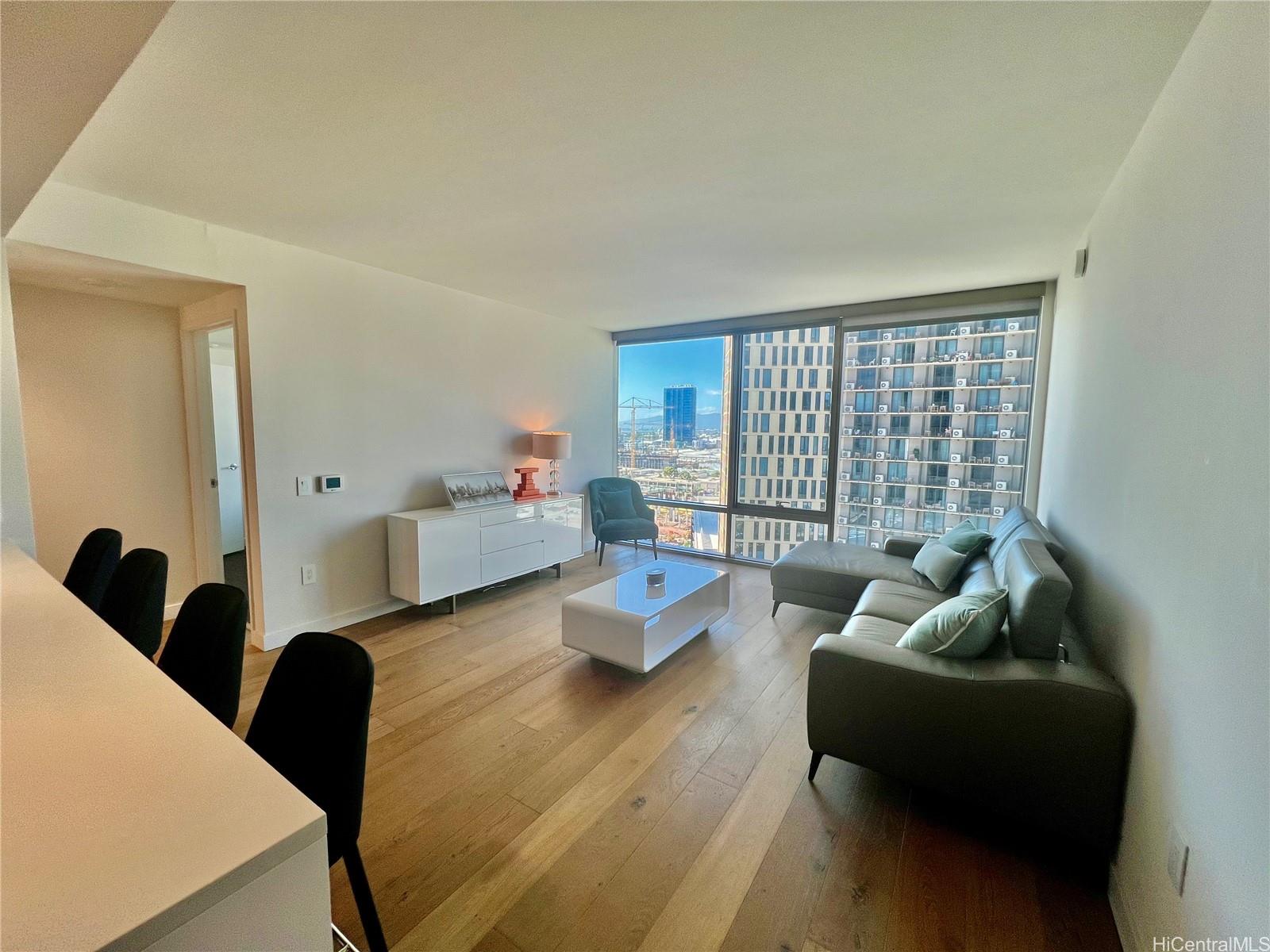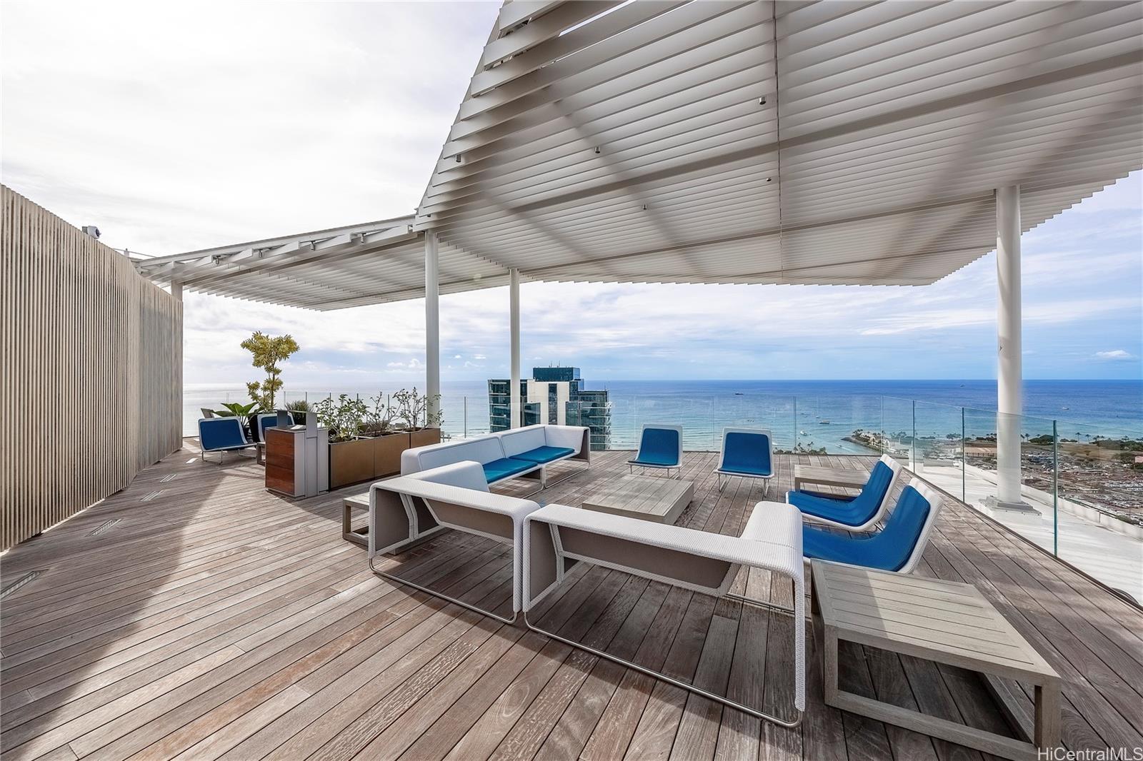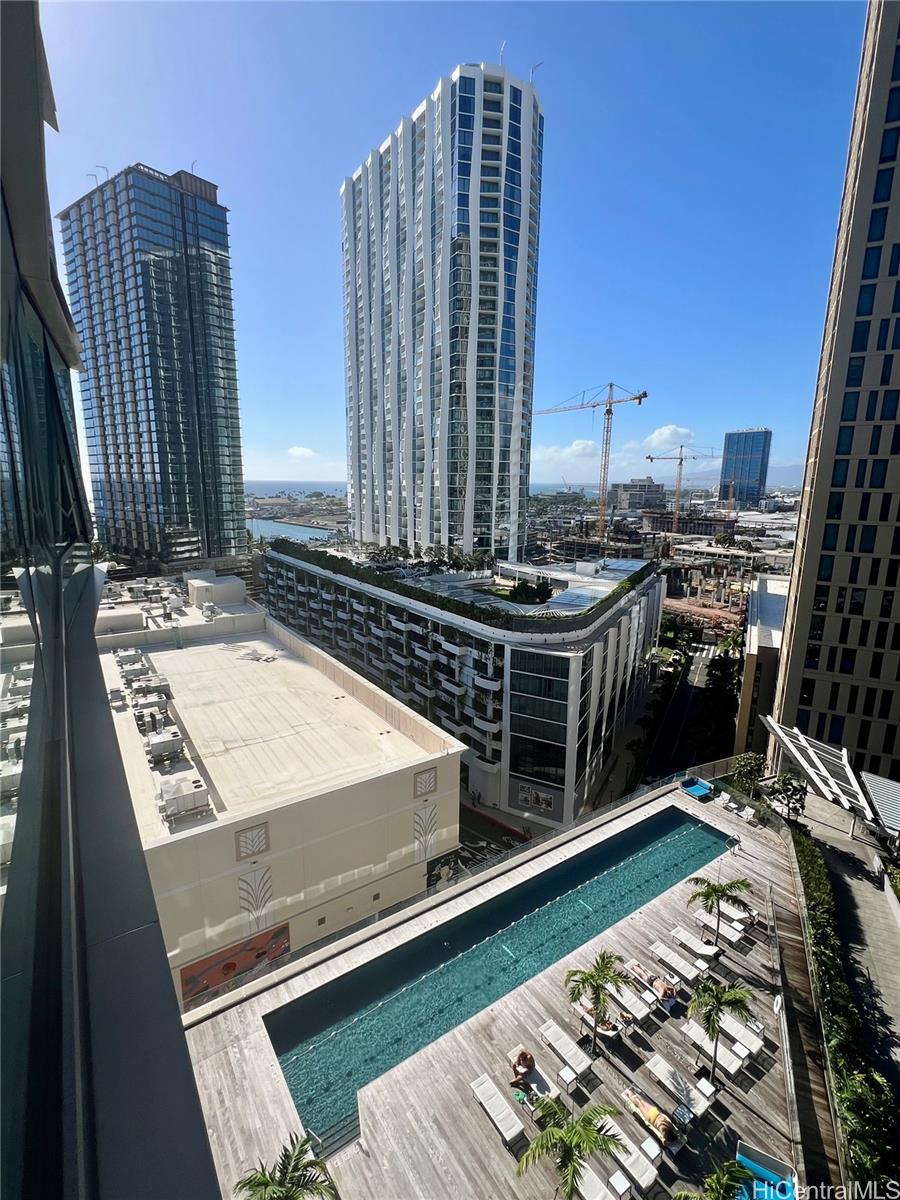 | uxury living in Kakaao! Beautiful 1Bed/1Bath/1Parking in A'eo. Ocean and sunset views with floor to ceiling windows, high-end appliances, wood floors. Amazing amenities with huge gym including outdoor workout space, 2 pools including lap pool, large hot tub, numerous cabana/grill space, private dining room, karaoke/entertainment room, movie theatre, Spa including dry and steam sauna and 3 guest suites! Enjoy a view like no other from the rooftop sky terrace! The convenience of Whole Foods right below, accessible from secure private entrance. The shops, dining and entertainment of Ward Village all within footsteps. 1 covered secure parking included(5-102). MF $782.64, TV & Internet $40.77, Assn Dues $27.32. Electric is billed separately. | What will it cost to Buy?