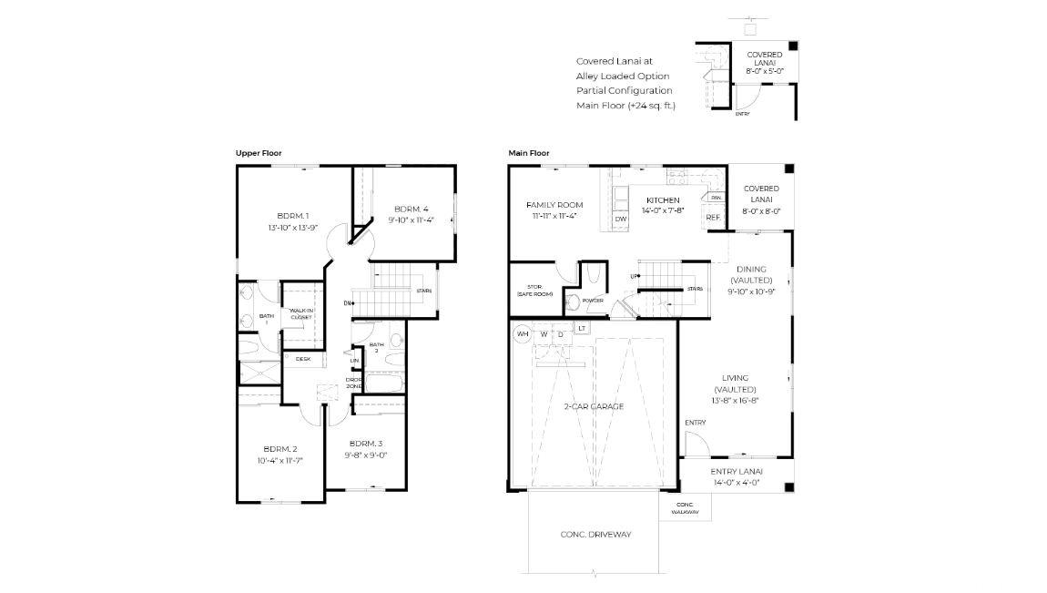 | his popular Grove plan, a 4/2.5 home is perfect for those desiring additional living space. In addition to the relaxing front and rear covered lanais, this home features two separate downstairs areas for family living or entertaining - a living room with a vaulted ceiling and adjacent dining area and a separate family room adjacent to the kitchen. The modern kitchen is equipped with white soft-close cabinets, solid surface countertops, a Kohler- single basin sink and stainless-steel range/oven, micro-hood and dishwasher. The kitchen peninsula with a raised bar is open to the family room and offers additional seating for casual dining or entertaining. Nearby is a powder room, a large storage closet and additional under stairs storage. The downstairs areas and all bathrooms boast vinyl plank flooring, while the staircase, upstairs hall and bedrooms have carpeting. The second-floor features 4 bedrooms, 2 baths, a multi-purpose Family Drop Zone with USB outlets and a built-in tech desk off the hallway. The primary bedroom features a large walk-in closet and a primary bath with dual sinks, solid surface countertop and a step-in shower. Home includes Kanalani + Cool Package | What will it cost to Buy?
