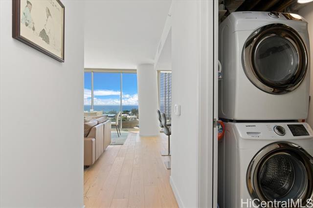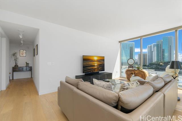 | elcome to your luxurious urban retreat! This stunning 2-bedroom, 2-bathroom spacious unit (1,170 sf) offers unparalleled convenience and sophistication. Complete with modern upgrades like electric shades throughout and sleek wood flooring, you'll have plenty of space to live, work, and play without compromise. Natural light pours in through large windows, illuminating the room and creating an inviting atmosphere for relaxation and entertainment. The primary suite boasts its own ensuite bathroom, while the second bedroom is perfect for guests or a home office, providing flexibility to suit your lifestyle needs. With two excellent parking stalls, including an Electric Vehicle charging device and proximity to elevators, plus a storage room right in front of the parking stall, all your belongings are easily accessible and well-organized. An optional second storage room, S4-19 (73 sq ft.), is available for purchase. Located in a prime location with Whole Foods conveniently situated at the bottom of the building, grocery shopping has never been easier.